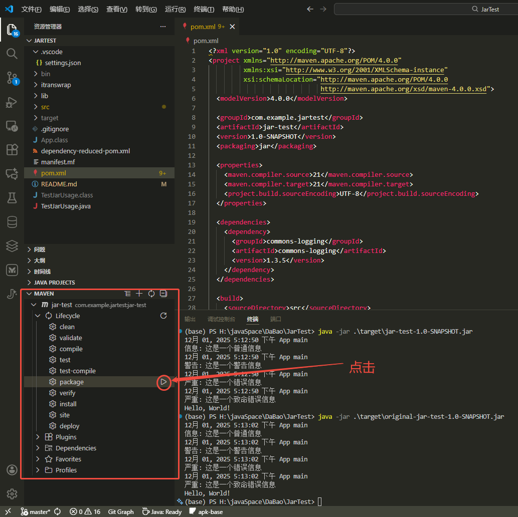 (base) PS H:\javaSpace\DaBao\JarTest> java -jar .\target\jar-test-1.0-SNAPSHOT.jar